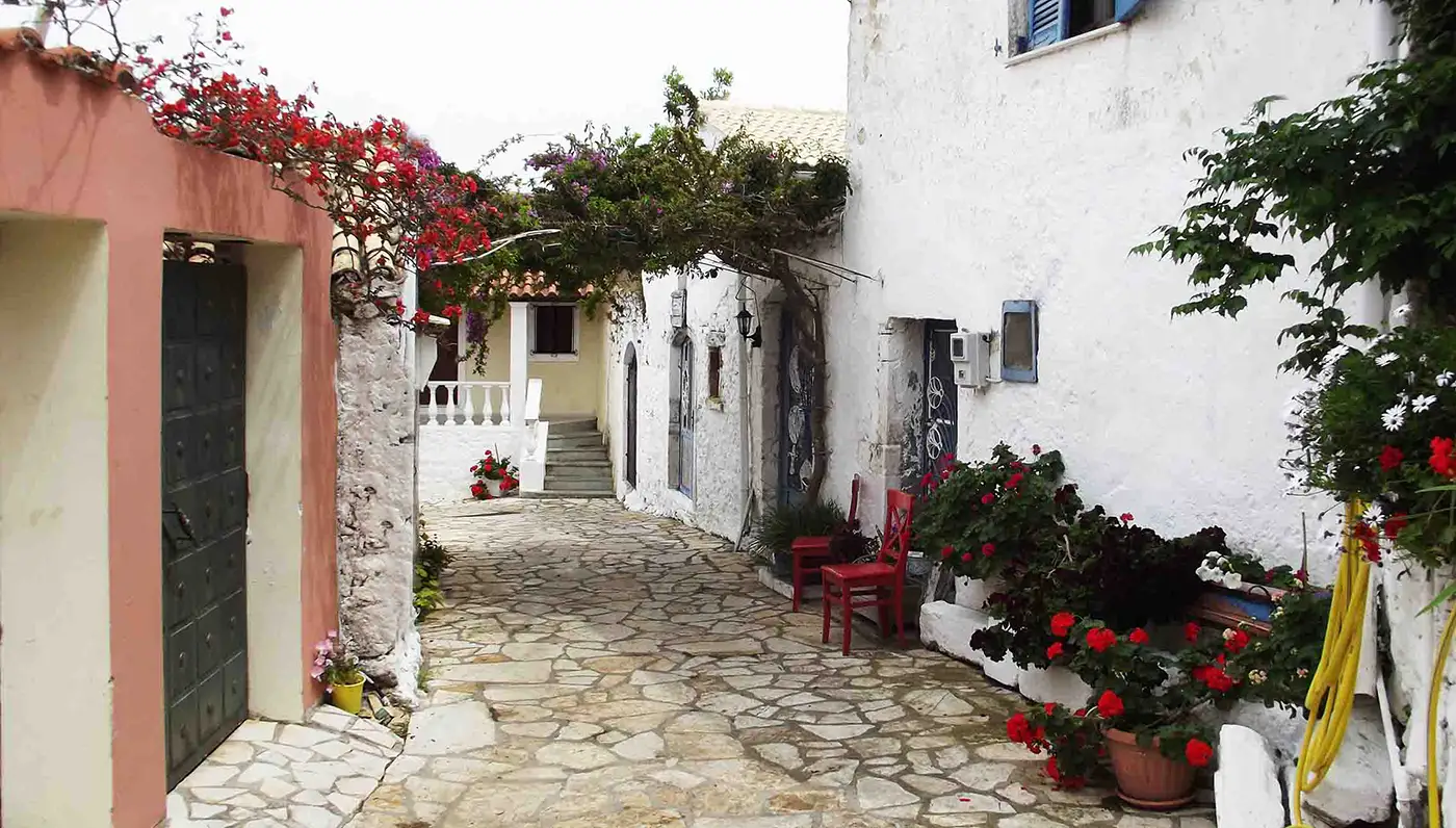 Known for its incredible sunset views and authentic charm, Afionas is perfect for a romantic dinner or a peaceful walk through narrow alleys overlooking the sea. Ideal spot for couples who want to enjoy panoramic views over the Ionian sea.